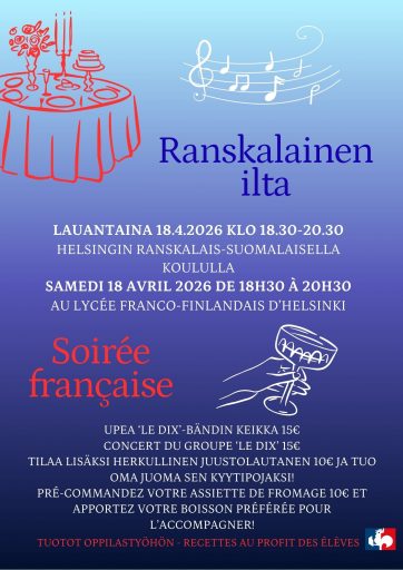 Ranskalainen ilta 18.4.2026 – Soirée française le 18 avril 2026